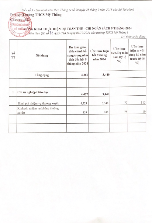 Công khai tình hình thực hiện dự toán NSNN 9 tháng năm 2024